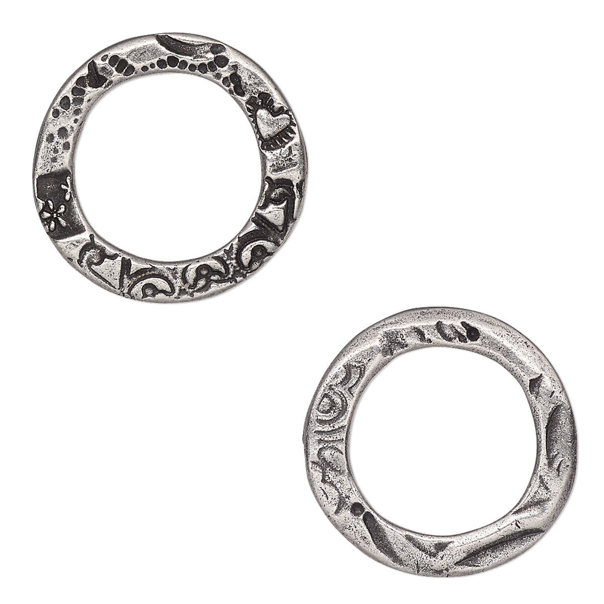 Component, TierraCast®, "Vida Mas Dulce" collection, antiqued pewter (tin-based alloy), 20mm open round with flora design, 13.5mm inside diameter. Sold per pkg of 20.