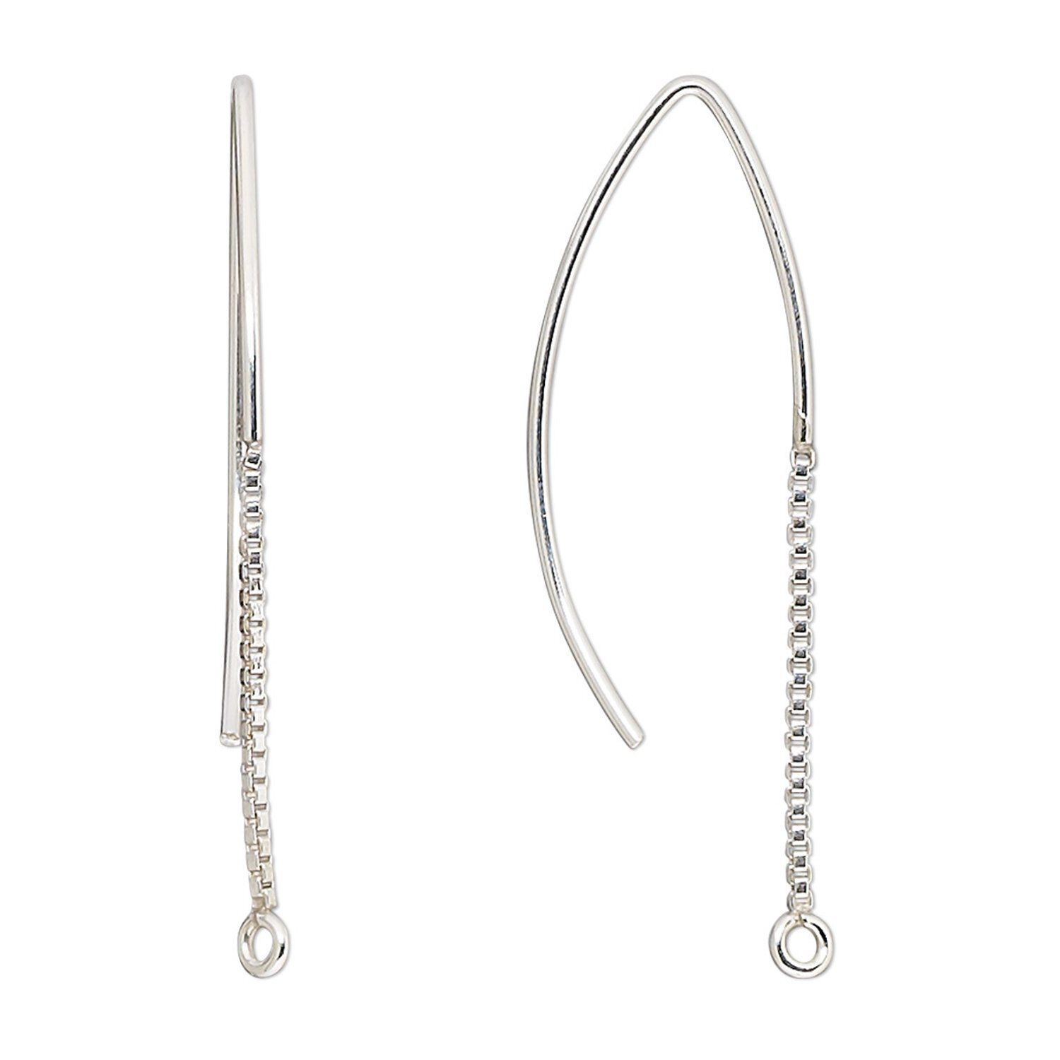 Ear wire 1pkg2 sterling silver, 38mm marquise / 1mm box chain / closed loop, 18 gauge 1 pair