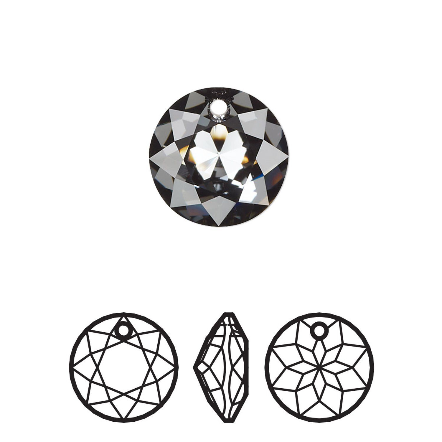 Drop 24pk crystal silver night, Swarovski® 14mm pendant classic cut 6430