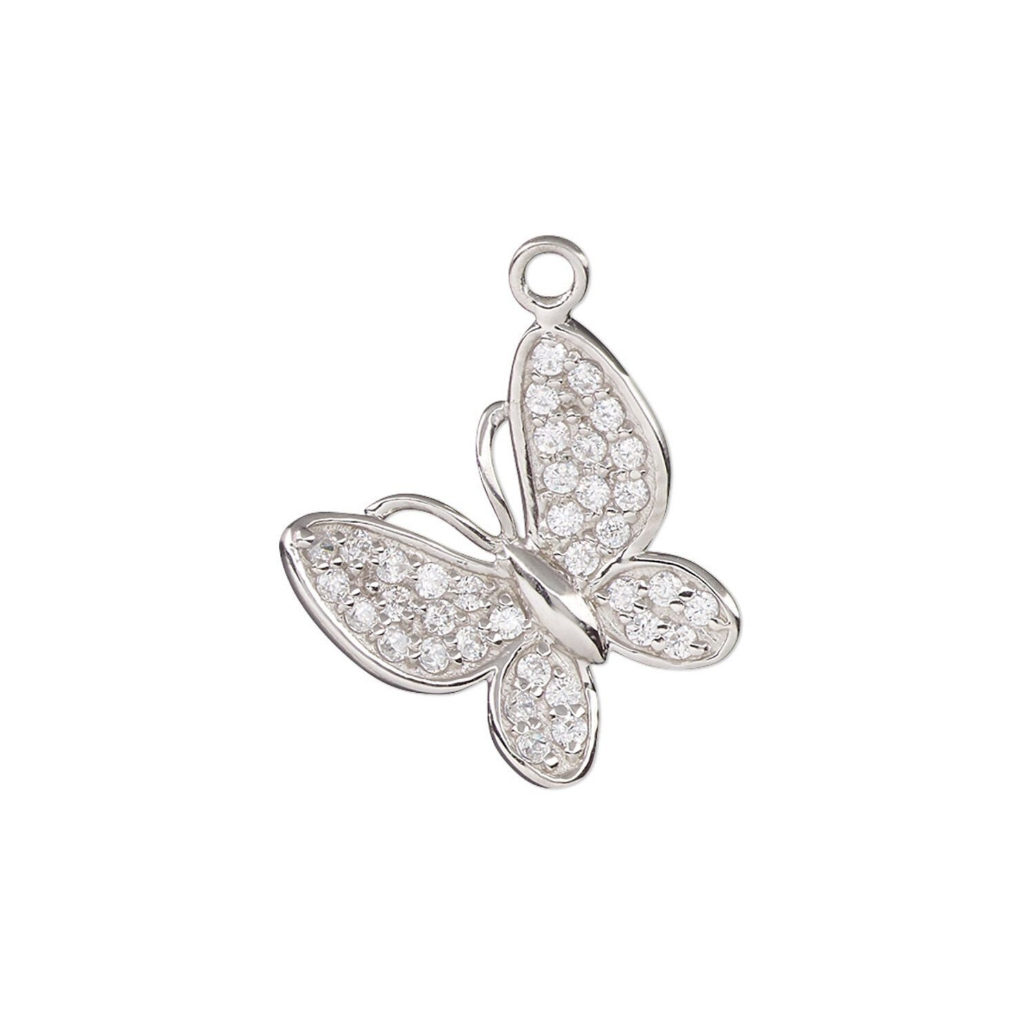 Fly on the wind with this single-sided rhodium-plated sterling silver and cubic zirconia butterfly charm. Charm has an anti-tarnish coating.