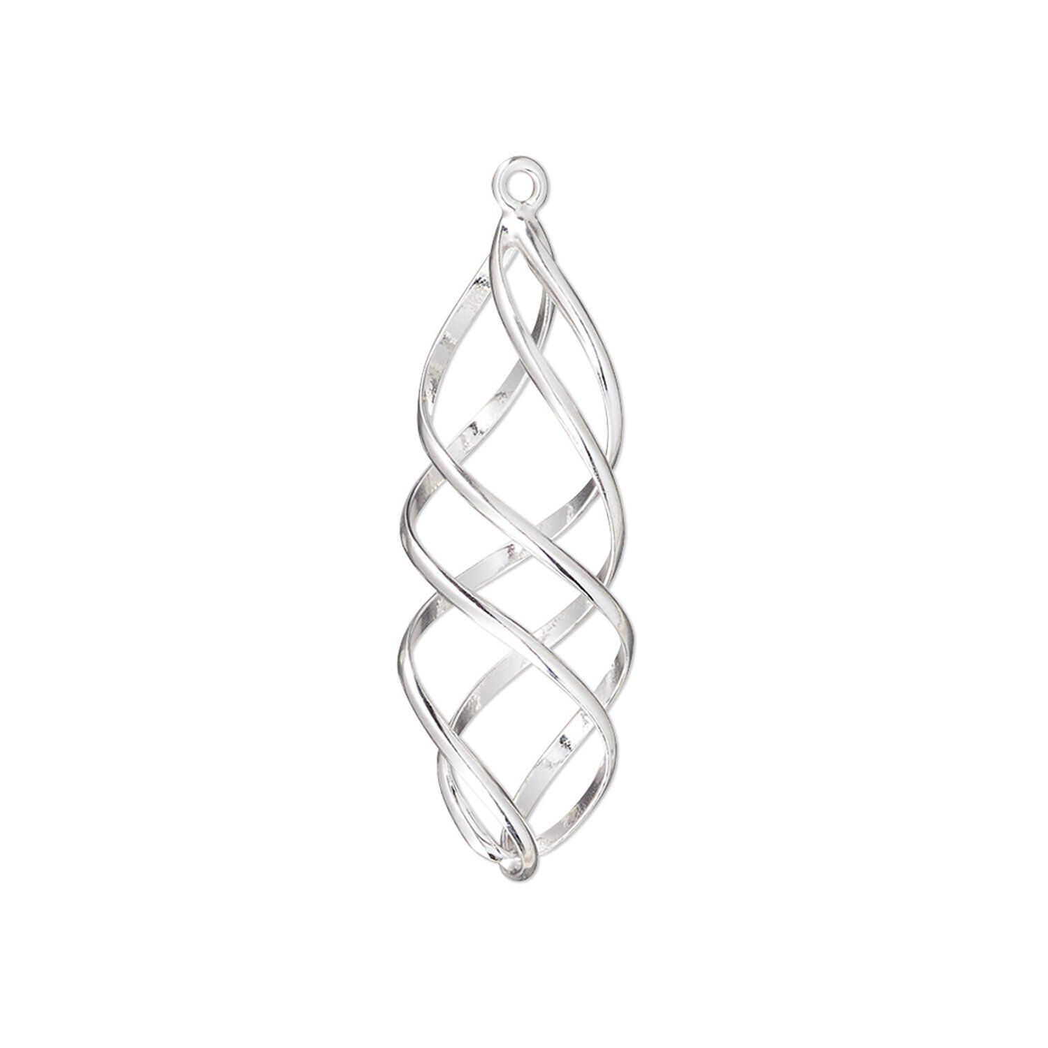 Drop, sterling silver, 27x9mm 3D spiral. Sold individually.
