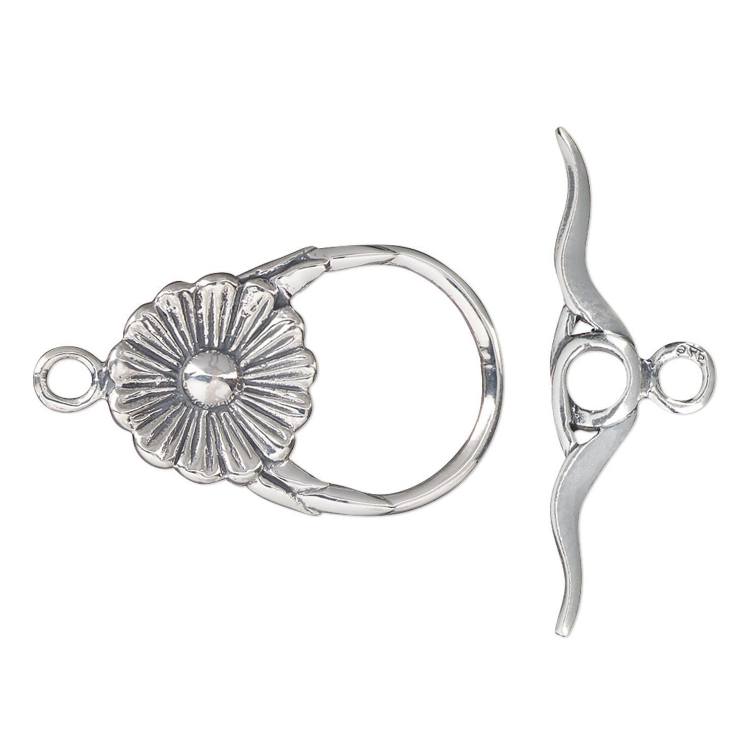 Clasp toggle 1pkg1 sterling silver, 23x16mm flower, antiqued 1-strand