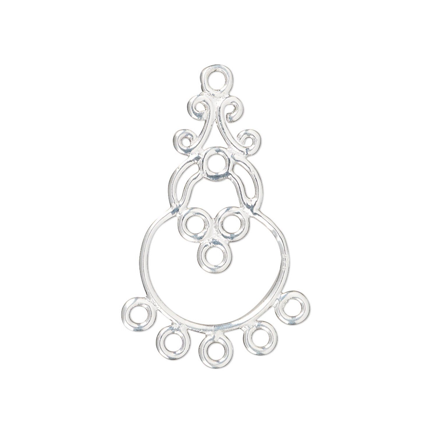 Drop, sterling silver, 23.5x15mm fancy teardrop with 8 loops. Sold individually.