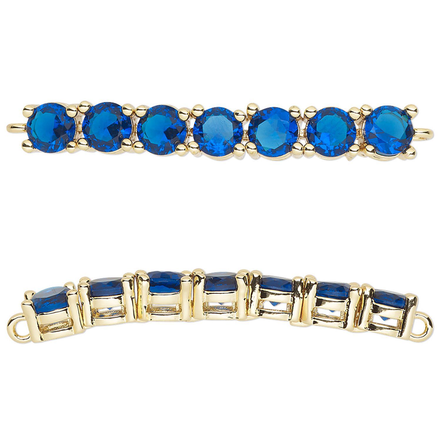 Easily add the beautiful sparkle of cubic zirconia to jewelry with this gracefully curved rectangle focal component. Cubic zirconia gems in a lovely sapphire hue are already set in each prong setting.