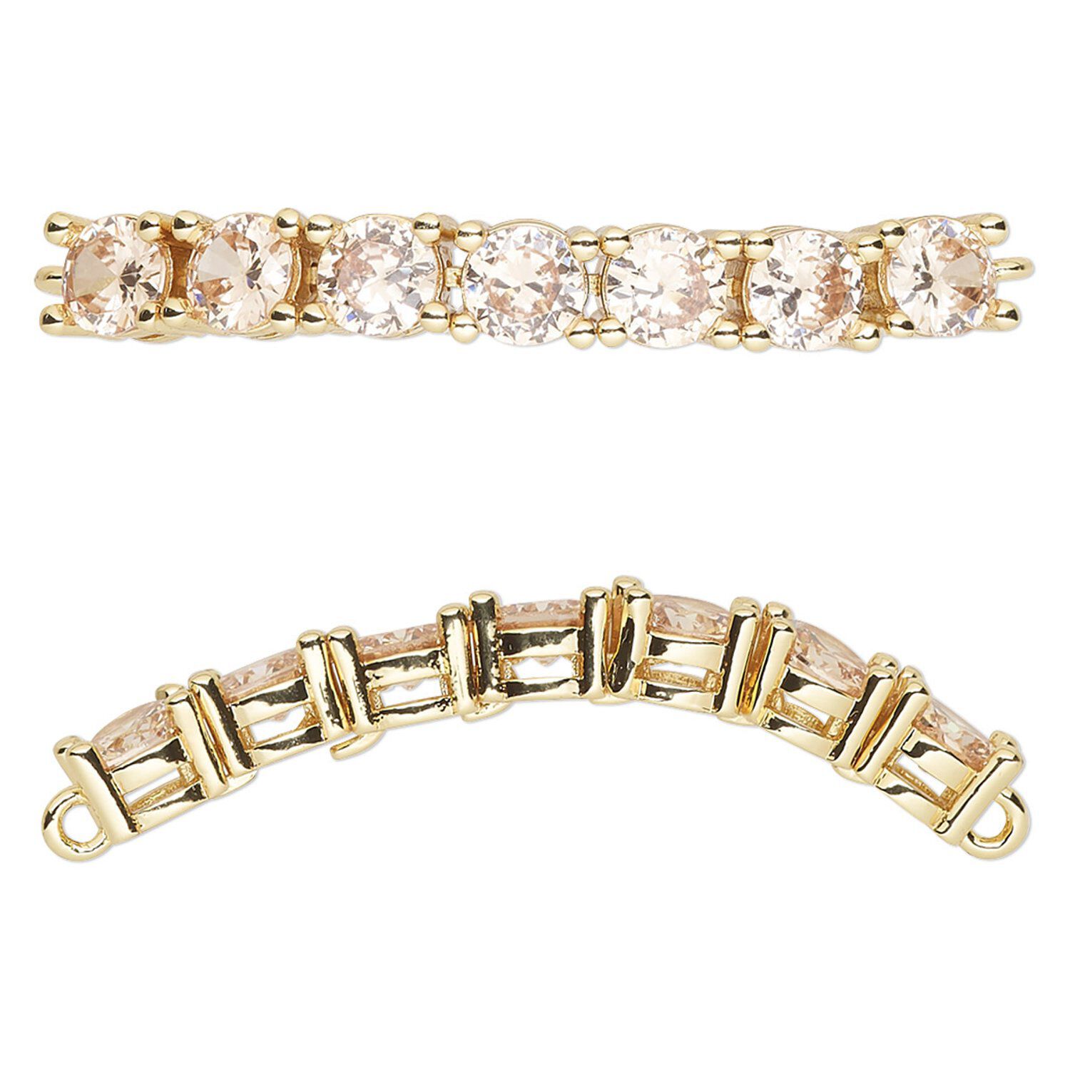 Easily add the beautiful sparkle of cubic zirconia to jewelry with this gracefully curved rectangle focal component. Cubic zirconia gems in a lovely topaz hue are already set in each prong setting.