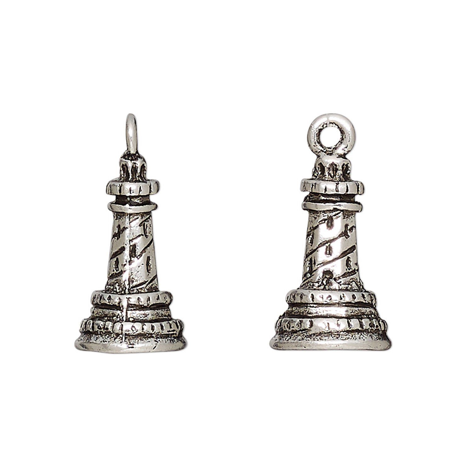 It's not hard to see why customers will love jewelry featuring these three-dimensional lighthouse charms. Each lightweight charm is highly detailed and given a beautiful antique silver plating. Sold in a package of two--ideal for earrings! Lighthouses are especially popular in maritime locations as well as during summer when nautical jewelry is sought after everywhere. A lighthouse symbolizes protection and the ability to navigate tough times just like they help ships avoid running aground especially during rough water.