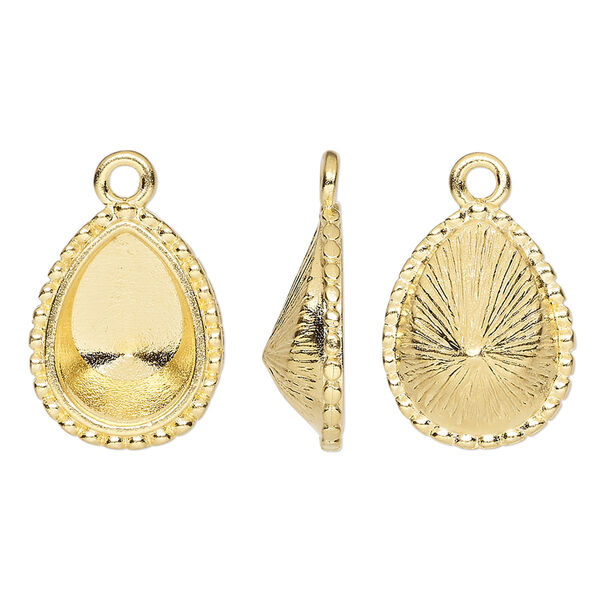 Drop, TierraCast®, Almost Instant Jewelry®, gold-plated pewter (tin-based alloy), 18x14mm teardrop with beaded edge and 14x10mm pear glue-in setting (4320). Sold per pkg of 2.