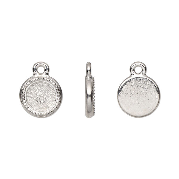 Drop, TierraCast®, Almost Instant Jewelry®, white bronze-plated pewter (tin-based alloy), 10mm round with beaded edge and SS34 round glue-in setting (2088). Sold per pkg of 20.
