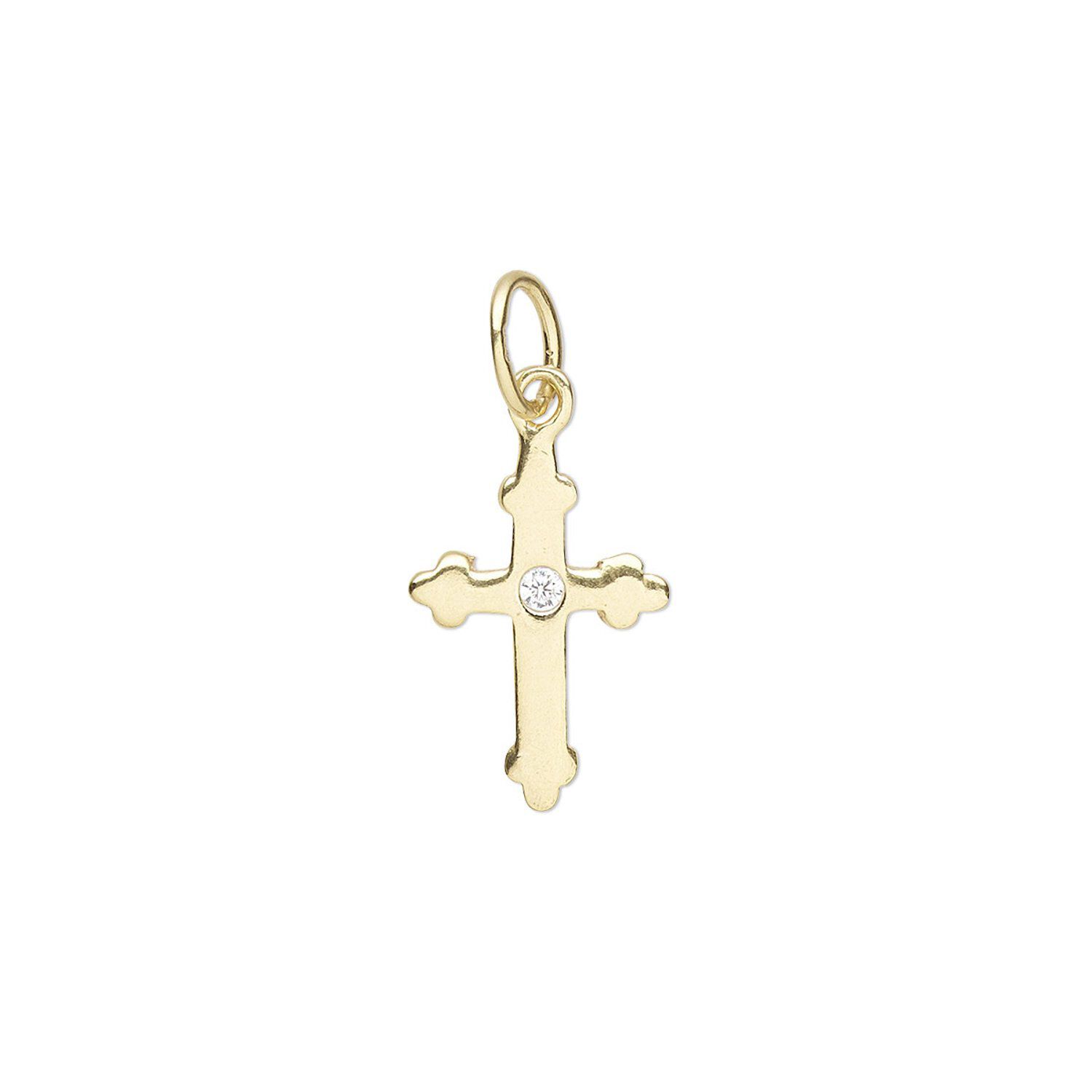 Drop, gold-plated sterling silver and cubic zirconia, clear, 13x9mm single-sided cross. Sold individually.