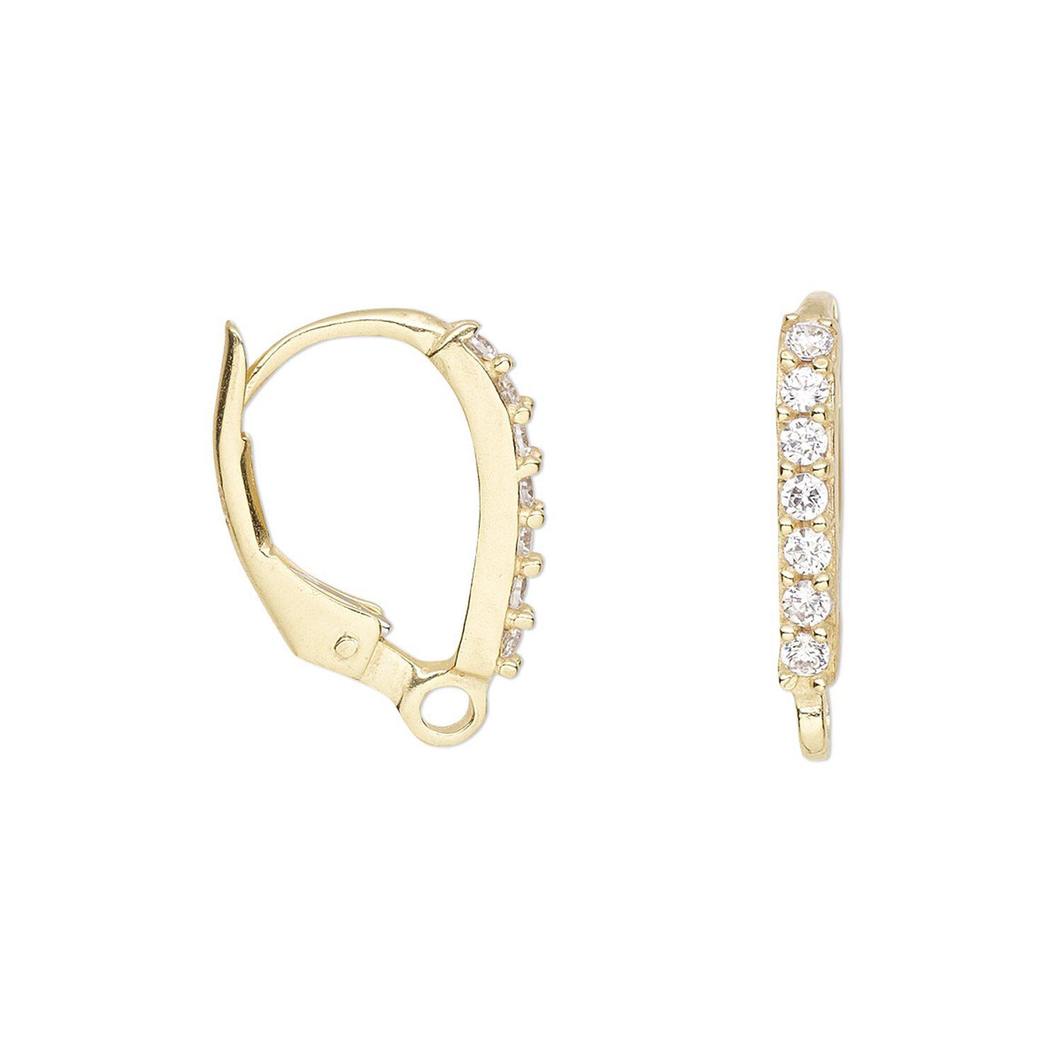 Ear wire is plated in 14kt gold over sterling silver, and embedded with a clear cubic zirconia. Slim and beautiful design created exclusively for Fire Mountain Gems and Beads. Ear wires have an anti-tarnish coating.
