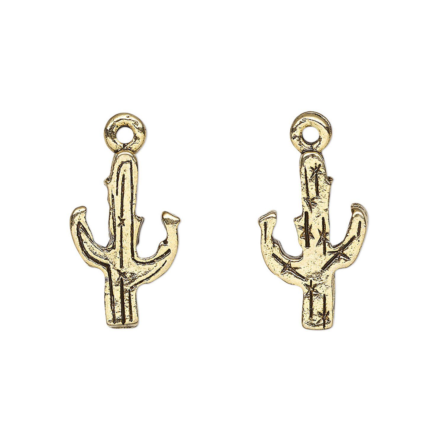 Customers will be looking sharp in jewelry made by you, featuring these cute cactus charms. Sold in a package of two--ideal for earrings! Cacti are especially popular in Southwest and desert jewelry. Cactuses are associated with endurance and longevity, while the cactus flower itself has come to symbolize protection and motherly love. Perfect for jewelry with special meaning such as Mother's Day or birthdays.