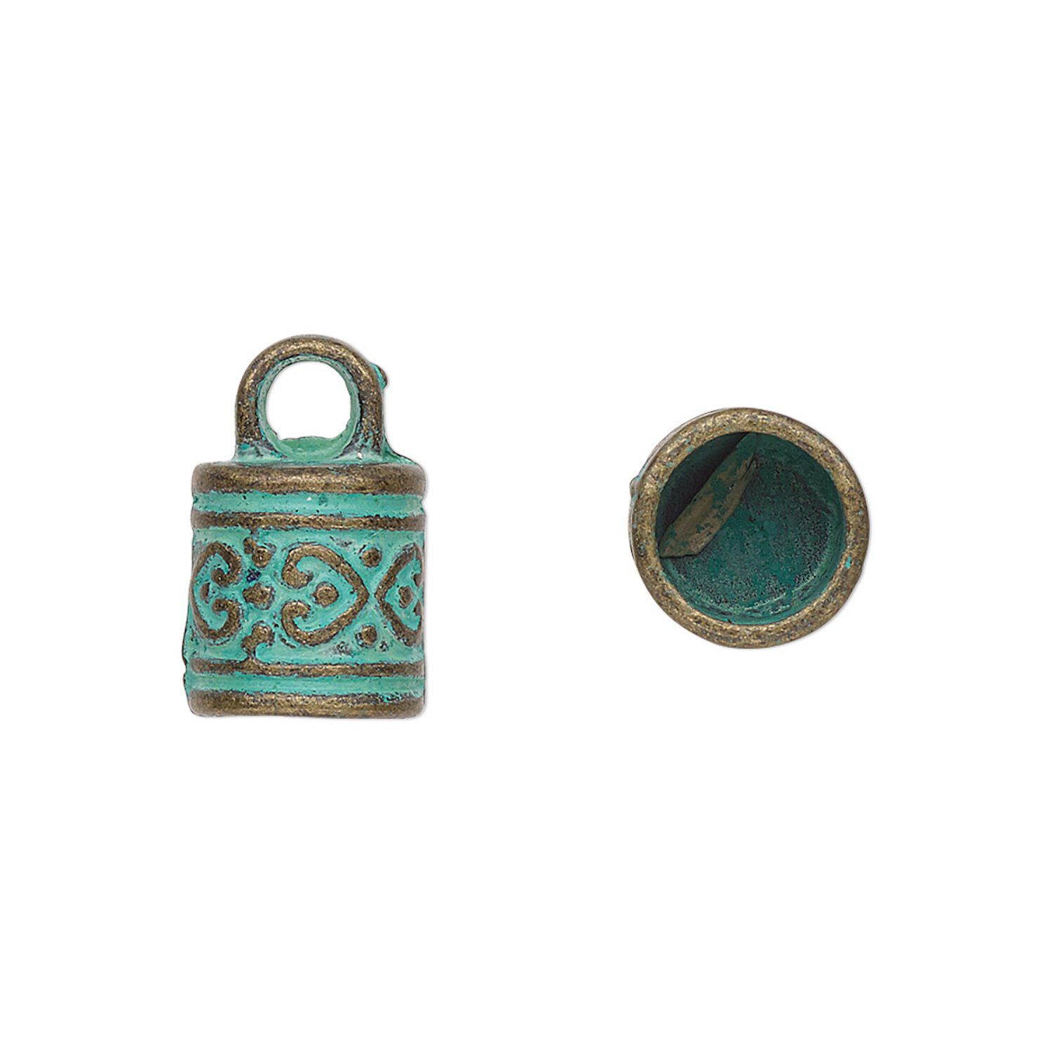 Use cord ends to finish necklaces or bracelets with 7mm cord. Use with satin cord, leather, hemp, imitation leather or suede lace. These cord ends also work well for Kumihimo and multi-strand designs. Cord ends feature a decorative blue-green patina finish over antiqued brass-plated "pewter." Since the patina finish can wear over time, it is recommended to use a fixative to secure and deepen the color.
