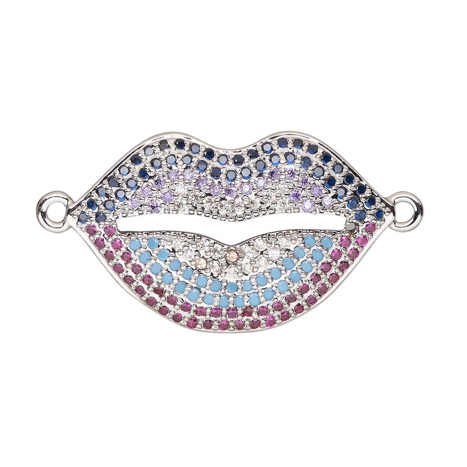 Micro pavé lips add glittering glamour to jewelry designs with machine-set cubic zirconia for high perceived value. Electro-coated silver-finish adds a sleek stylish look to the design. Colors can include pink, dark blue, purple and more.
