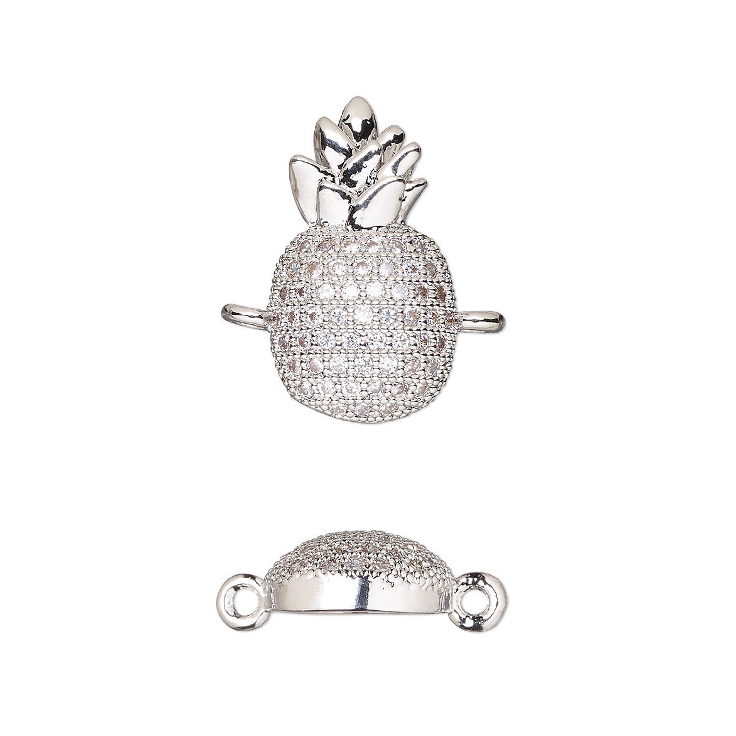 Micro pavé pineapple adds glittering glamour to jewelry designs with machine-set cubic zirconia for high perceived value. Electro-coated silver-finish adds a sleek stylish look to the design.