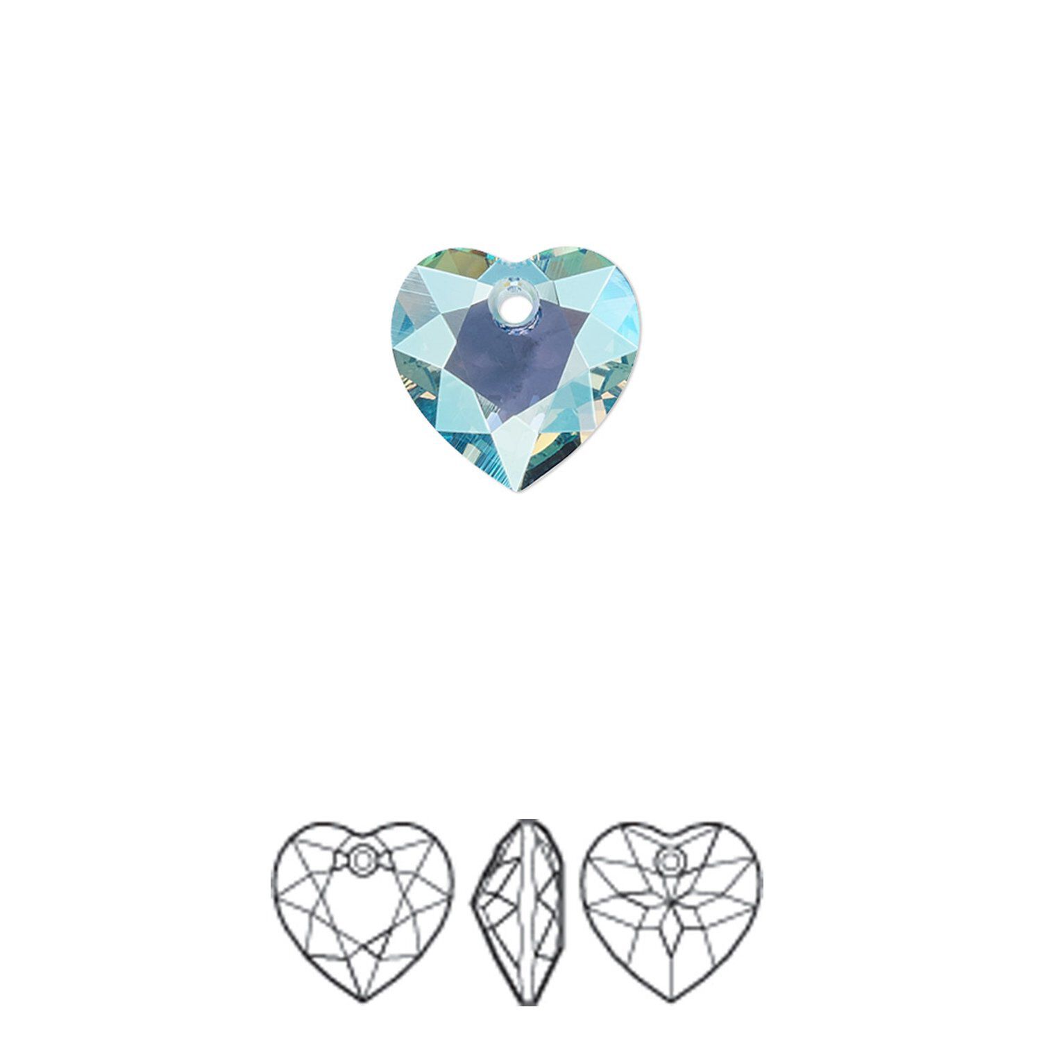 Drop 48pk aquamarine shimmer, Swarovski® 10.5mm pendant heart cut 6432