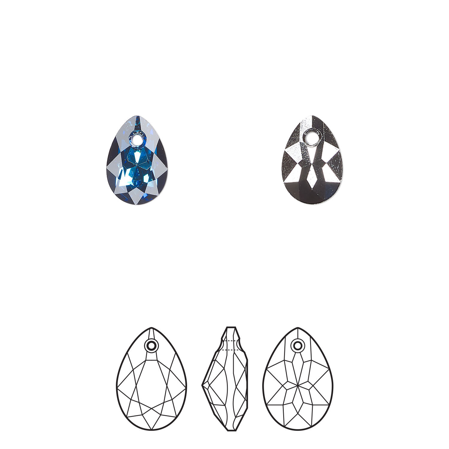 Drop 12pk crystal Bermuda blue P, Crystal Passions® 9x6mm pendant pear cut 6433