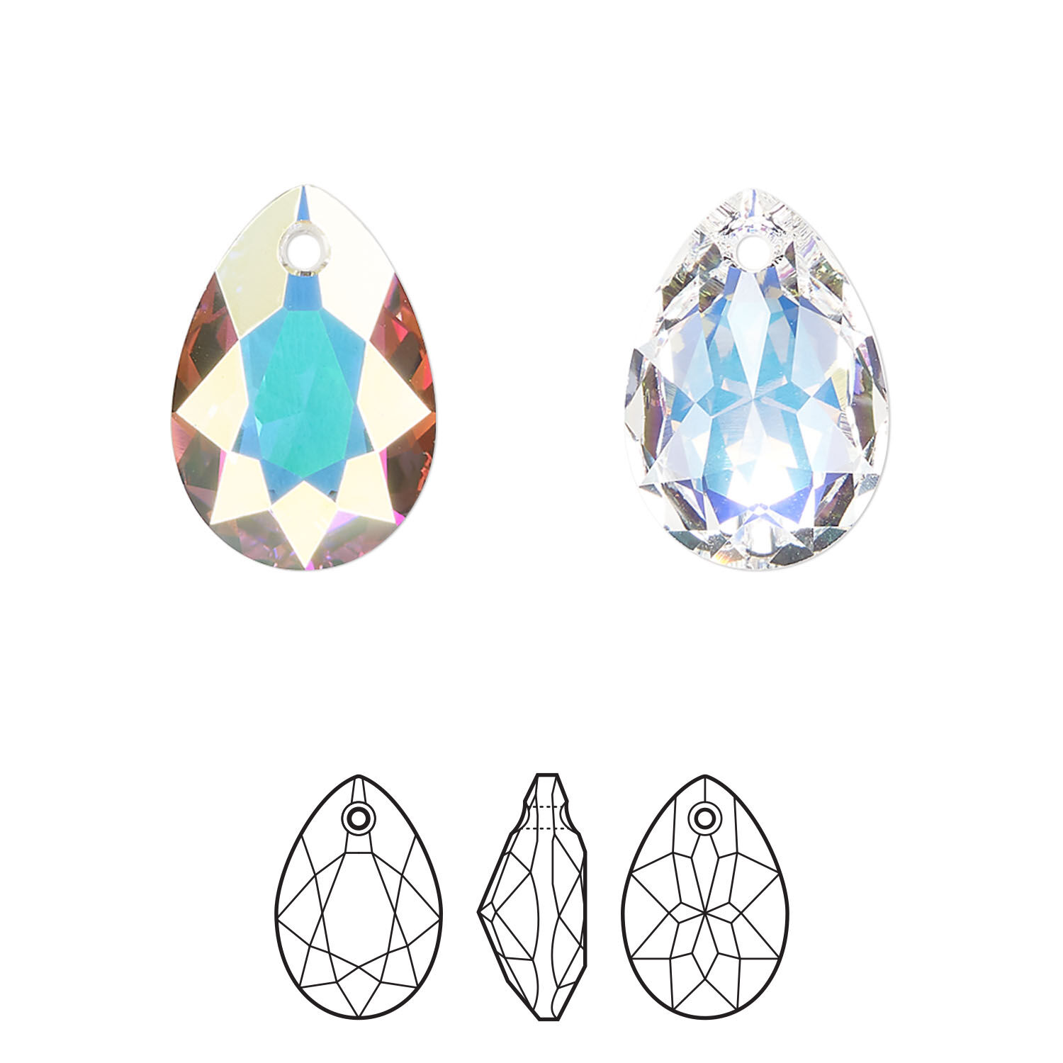 Drop 2pk crystal AB, Crystal Passions® 16x11mm pendant pear cut 6433
