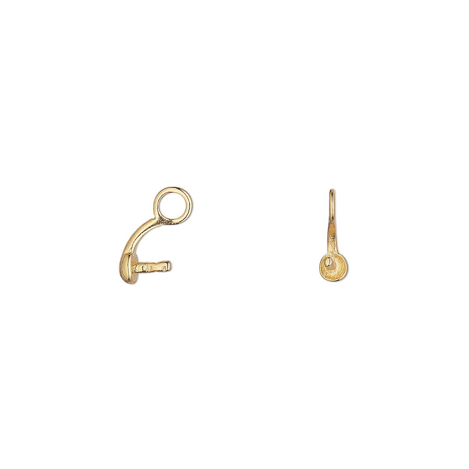 Curved or "scoop" bail has a cup with peg finding on the end to glue on a 6mm half-drilled bead. Bails are machine fabricated for uniform size and shape. Great for earring and necklace designs.
