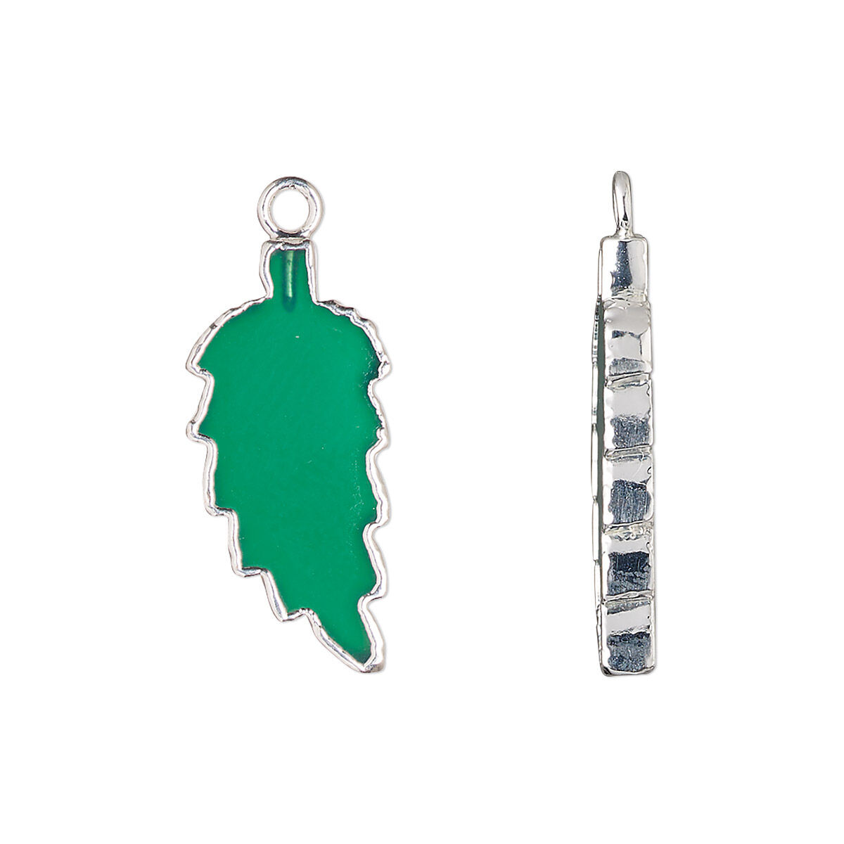 Hand-crafted green onyx flat feather drop is electrocoated with sterling silver and double-sided for sleek and sophisticated styles. Featuring one top loop, it is ideal for creating quick and easy earrings, necklaces or other jewelry styles. Sizes, shapes and colors may vary with handcrafted items.