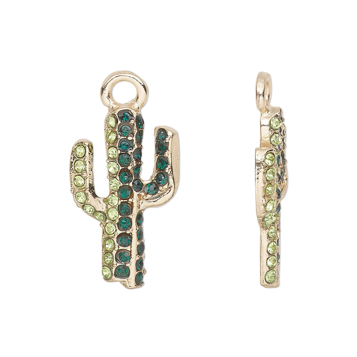 Nothing says "Southwest Chic" better than a rhinestone-encrusted cactus. These gold-finished "pewter" charms will sparkle in the light as you dance the two-step or stroll along the town square.