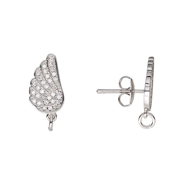 Dazzling micro pavé wing earstuds are ready to embellish with a drop or dangle of your choice. Tiny clear cubic zirconia faceted stones are set into gleaming imitation rhodium-plated brass for a long lasting shine. Earnuts included.