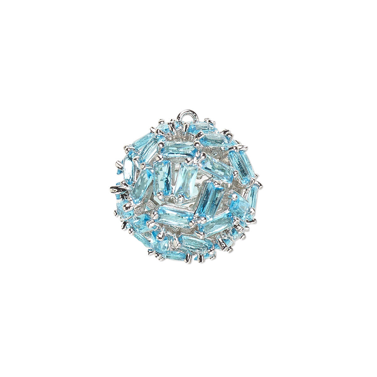 Drop, cubic zirconia and silver-plated brass, aqua blue, 17.5mm hollow ball. Sold individually.