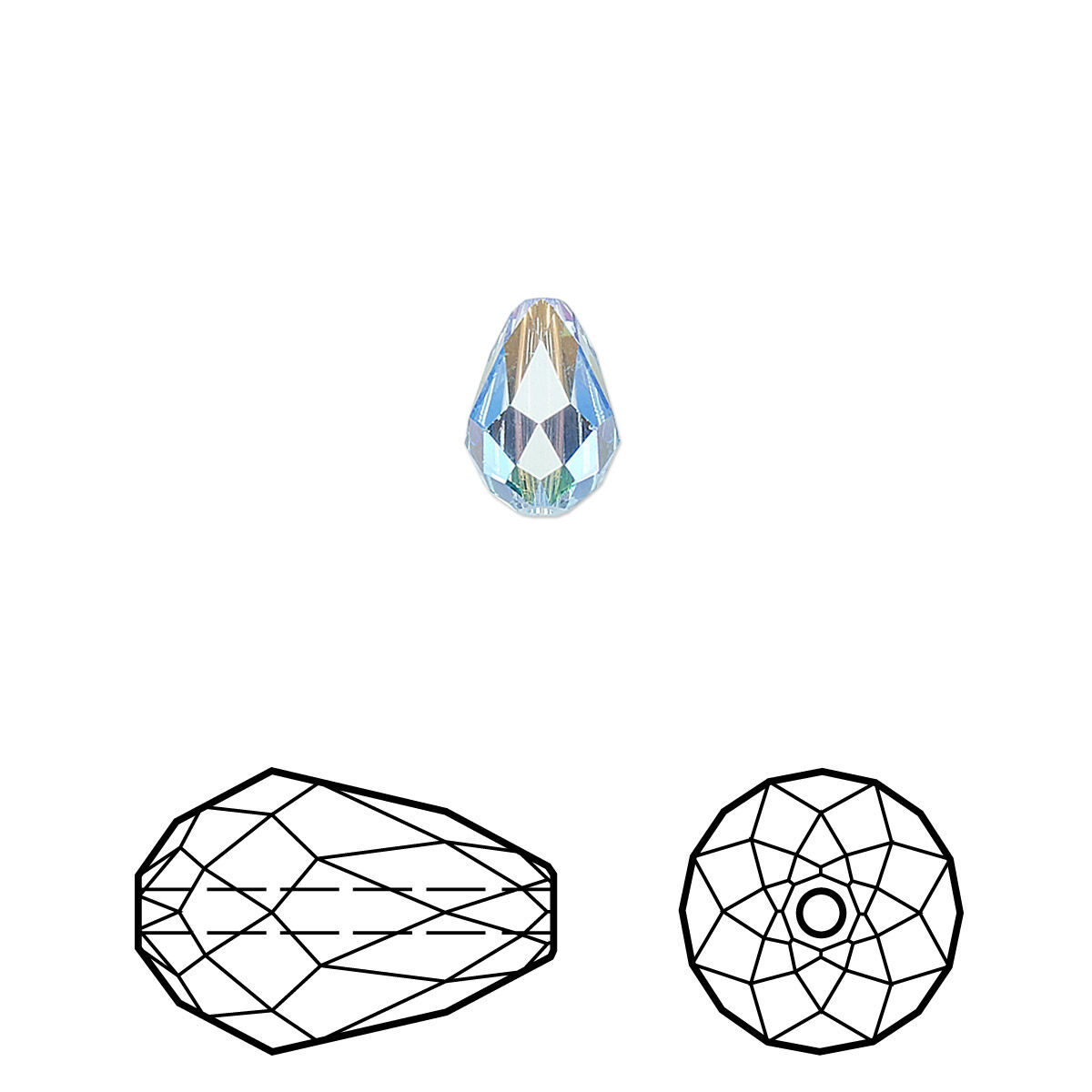 Bead 24pk aquamarine shimmer 2X, Crystal Passions® 9x6mm teardrop 5500