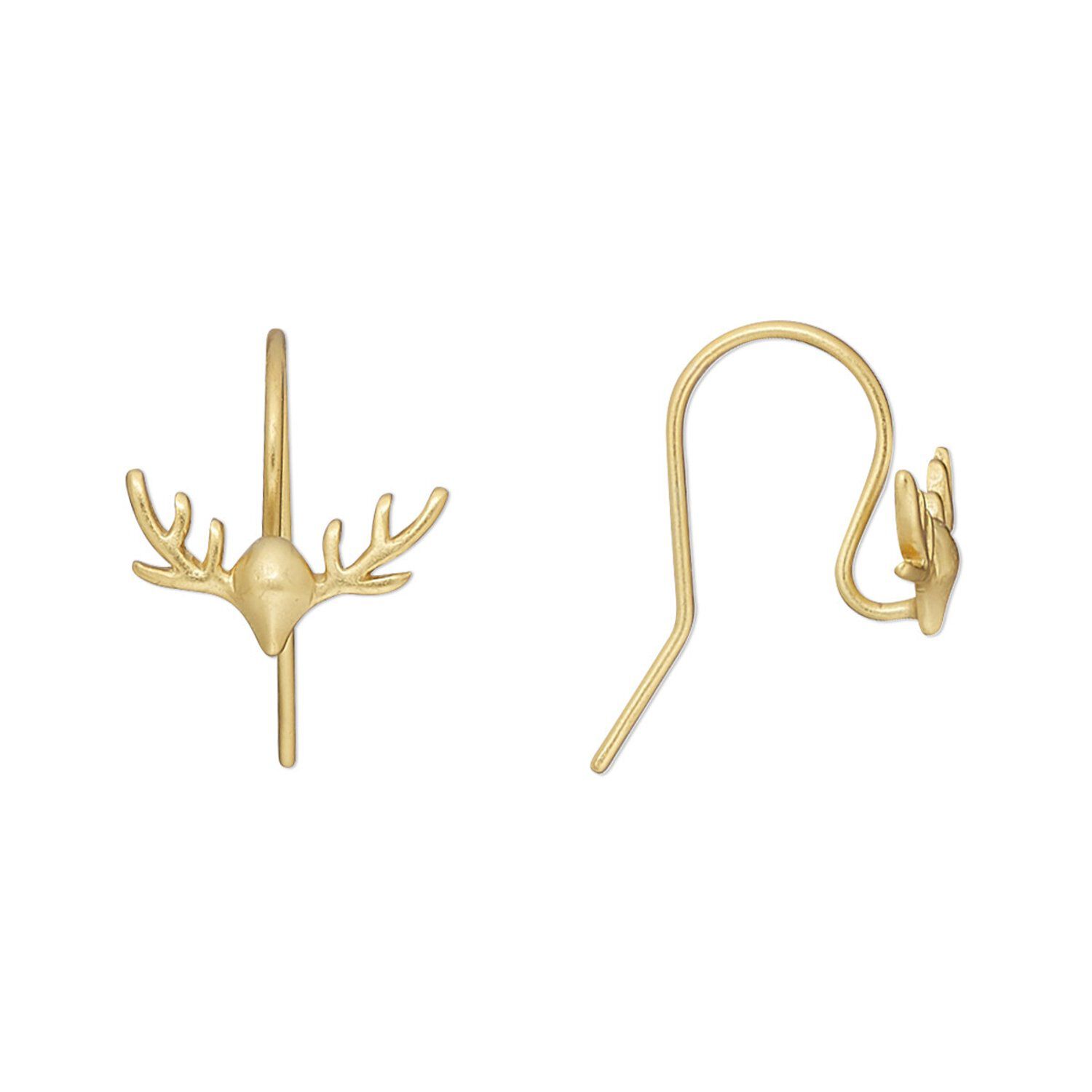 Tiny antler ear wires with open loop are ideal for creating reindeer earrings. The lightweight ear wires are cast sterling silver then gold-plated and satin finished. Wear as is or pair with beads, Amoracast® charms and bead caps. Ear wires have an anti-tarnish coating.