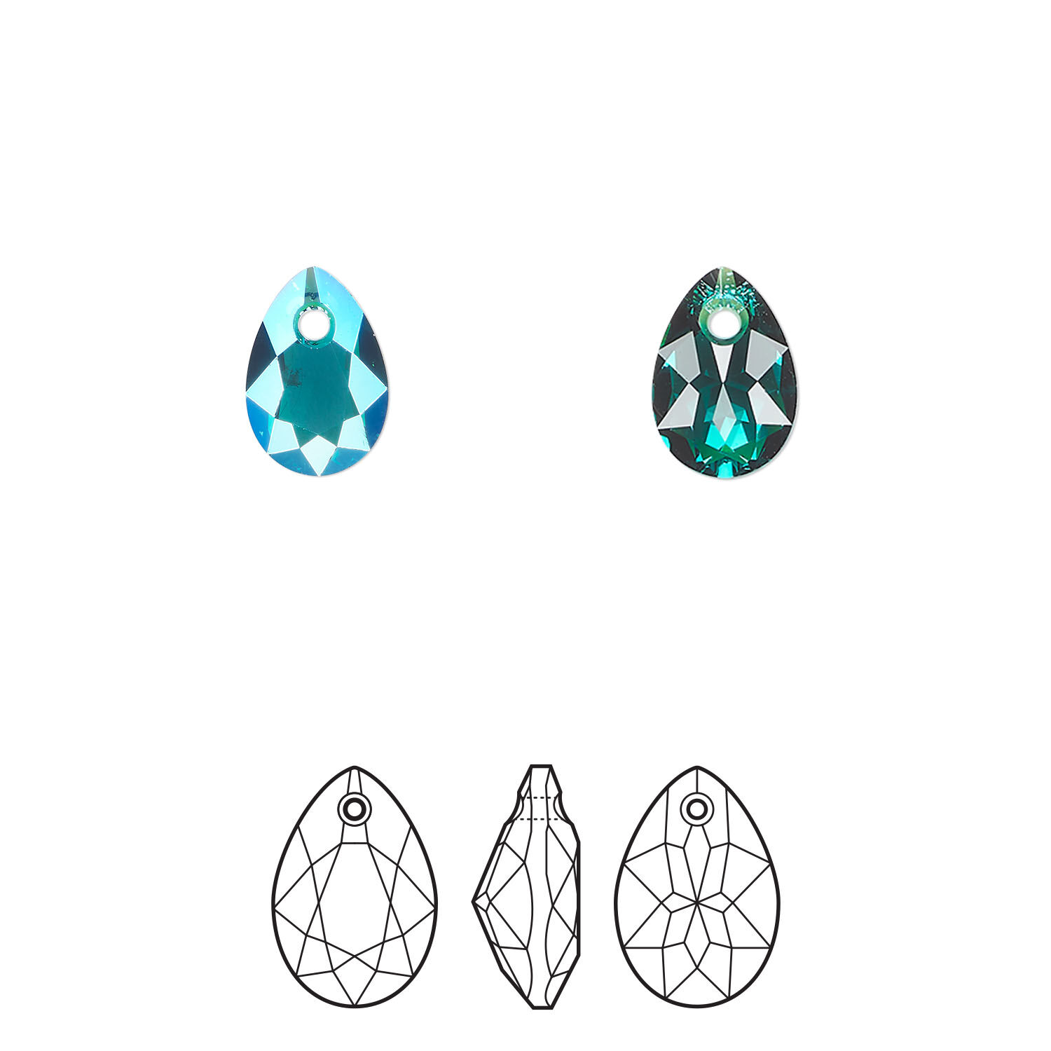 Drop 4pk emerald shimmer, Crystal Passions® 9x6mm pendant pear cut 6433