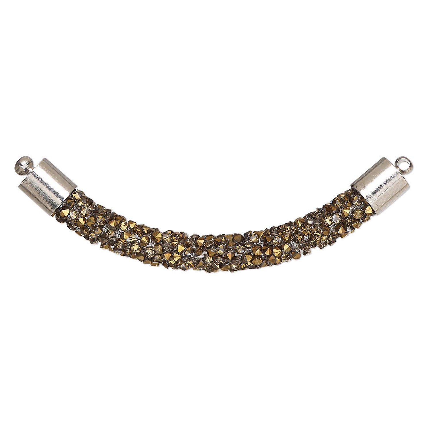 Focal, glass / resin / imitation rhodium-finished brass, gold, 60-64mm curved tube. Sold per pkg of 4.