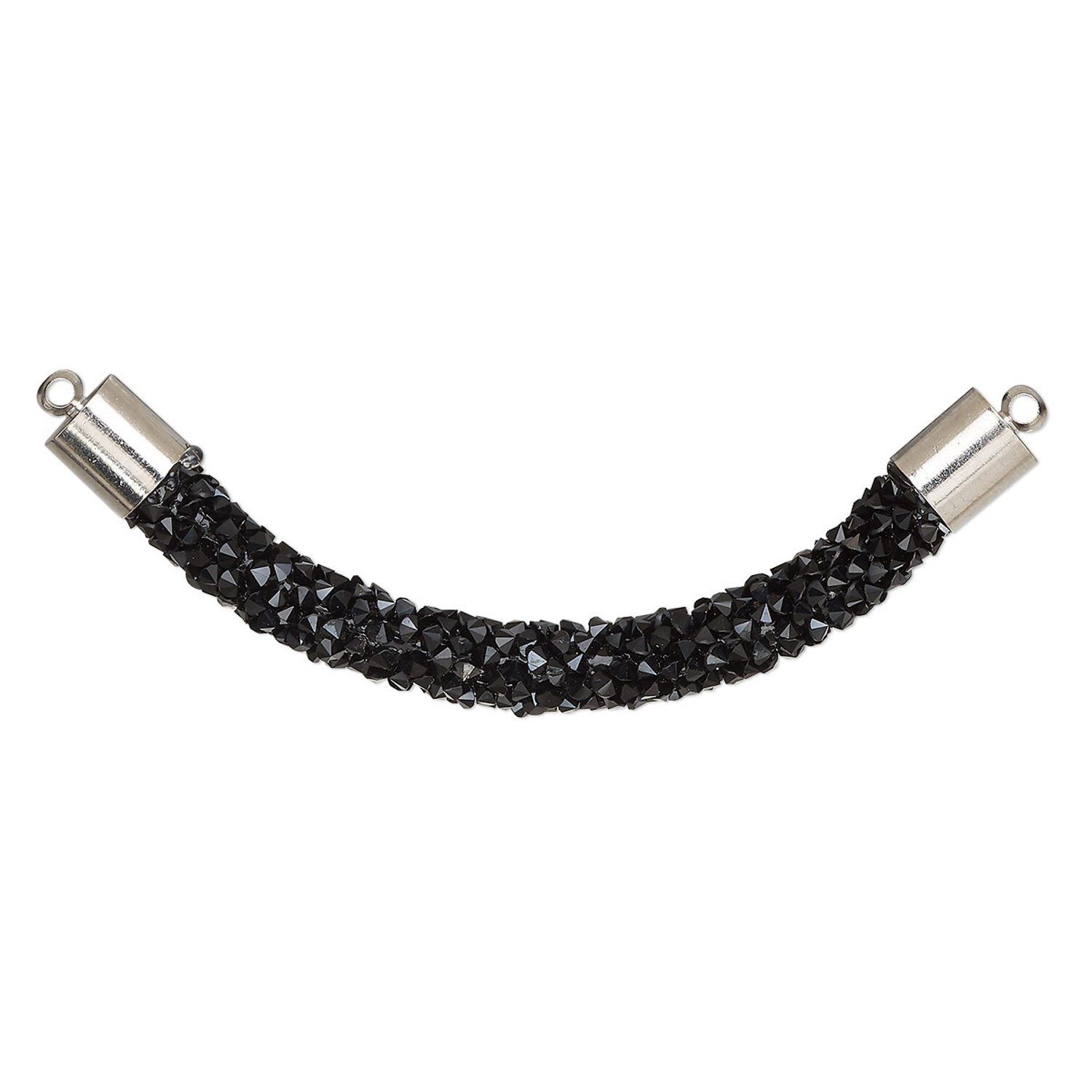 Focal, glass / resin / imitation rhodium-finished brass, black, 60-64mm curved tube. Sold per pkg of 4.