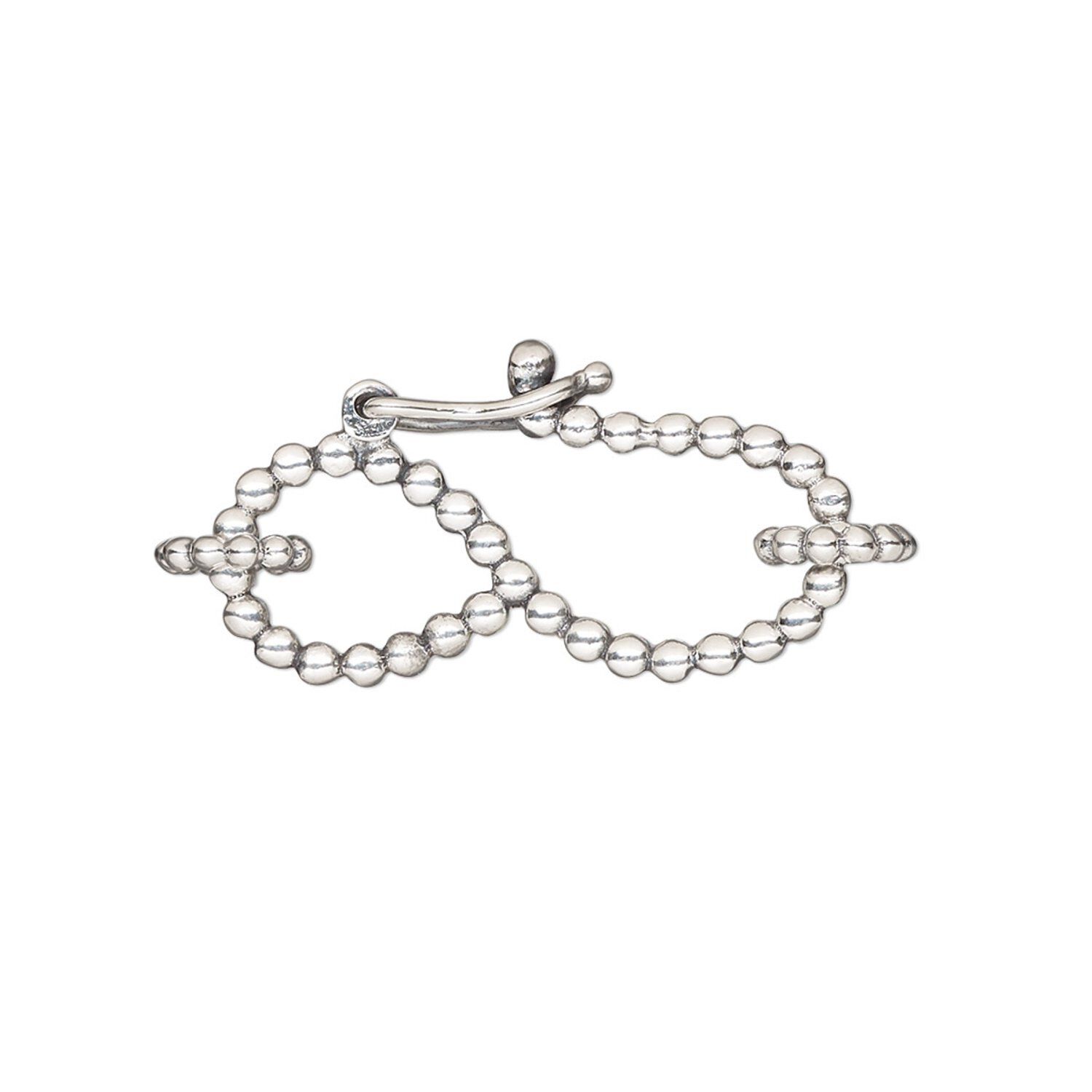 This antiqued sterling silver S-hook clasp with dot design features (2) 6mm closed jump rings for attaching beaded strands or chains. This clasp has an easy-to-use safety catch, to ensure that necklaces and bracelets remain closed. Sizes, shapes and colors may vary with handcrafted items. Clasp has an anti-tarnish coating.