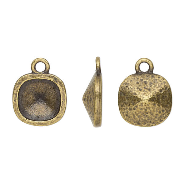 Drop, TierraCast®, Almost Instant Jewelry®, antique brass-plated pewter (tin-based alloy), 13mm hammered square with 10mm cushion glue-in setting (4470). Sold per pkg of 20.