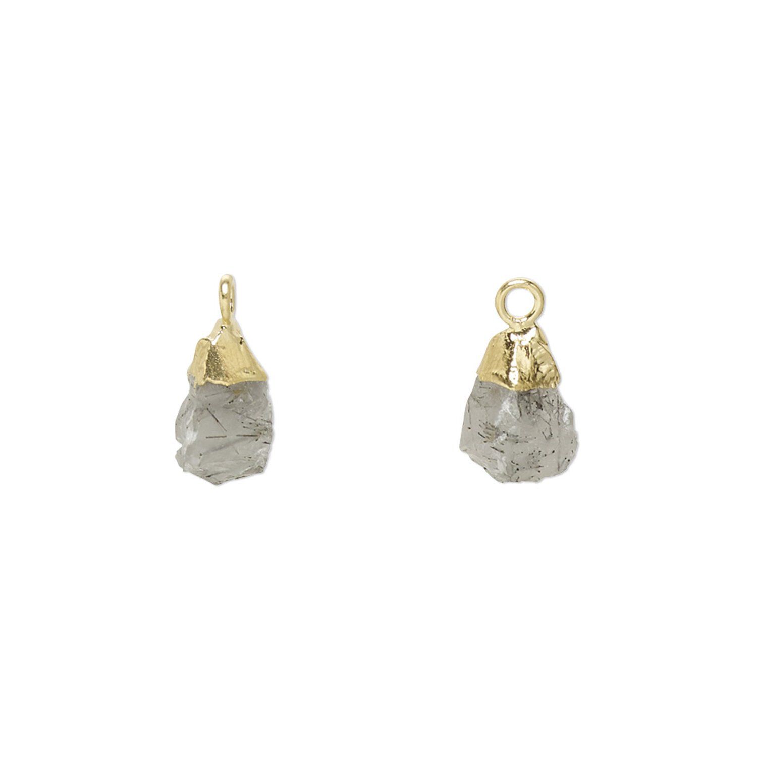 Beautiful tourmalinated quartz in a popular rough-cut nugget shape has a gold-plated sterling silver loop for easily adding this gemstone to jewelry creations. According to metaphysical beliefs, tourmalinated quartz protects the wearer from negative thoughts and emotions. Sizes, shapes and colors may vary with handcrafted items.