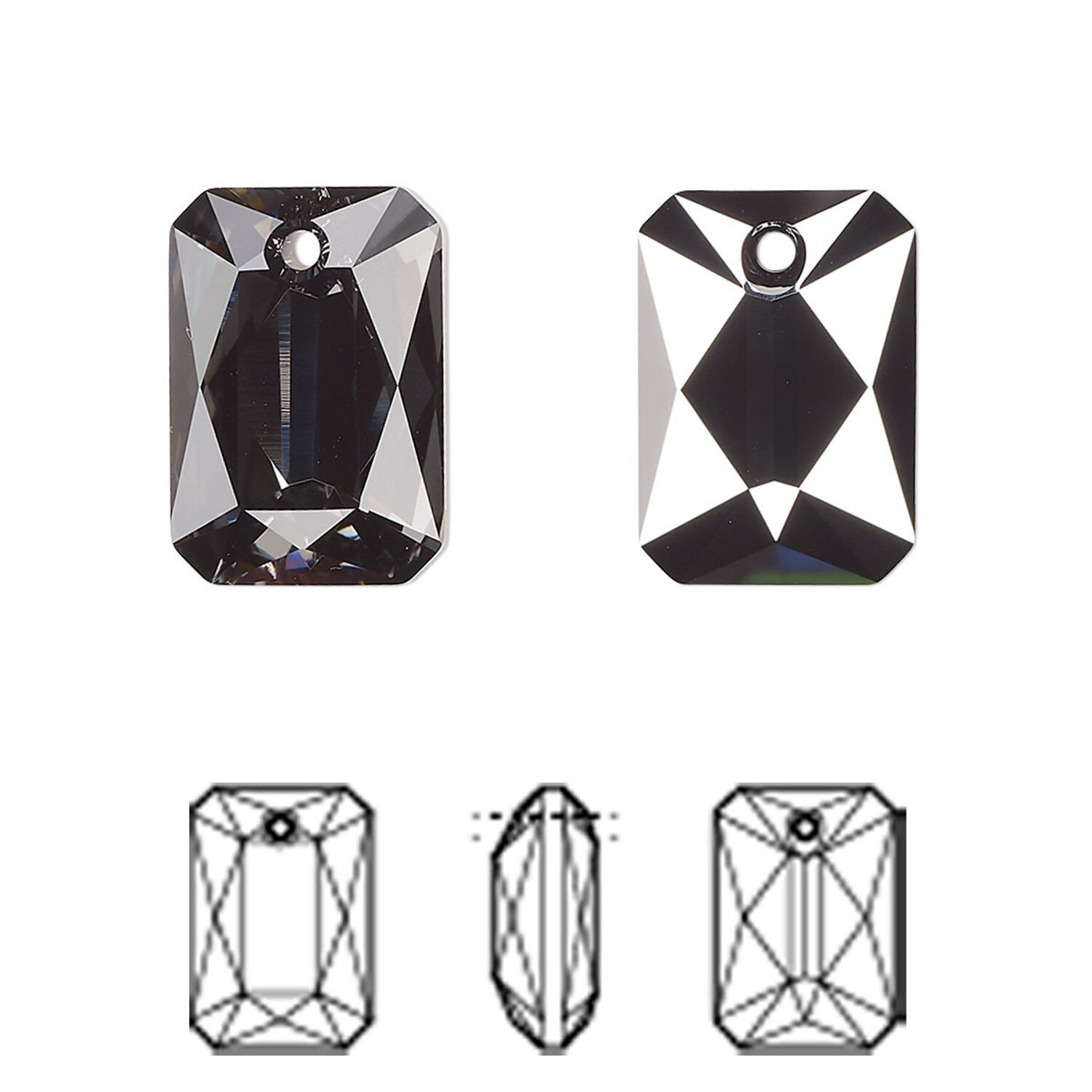 Drop 24pk crystal silver night, Swarovski® 16x11.5mm pendant emerald cut 6435