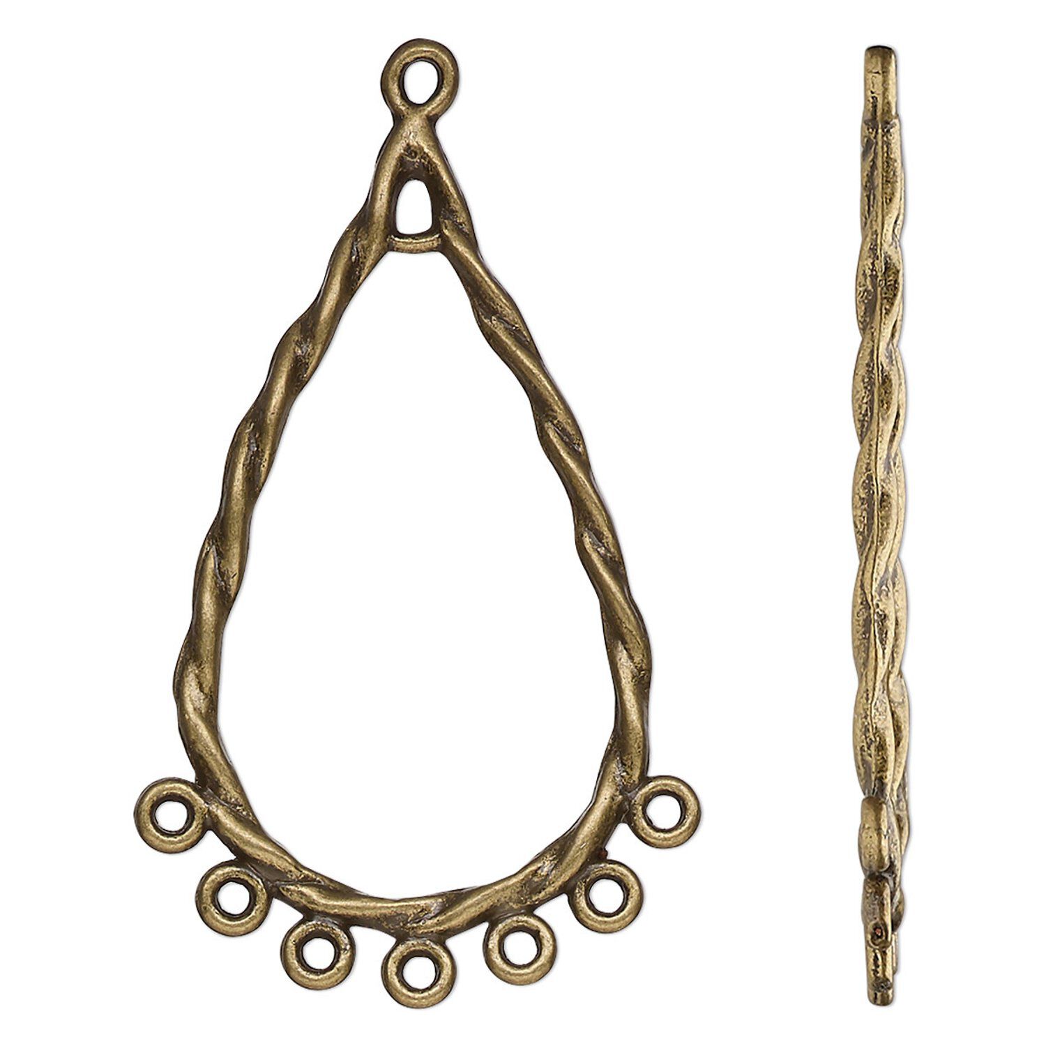 Focal, antique brass-finished "pewter" (zinc-based alloy), 36x20.5mm double-sided open twisted teardrop with 8 closed loops. Sold per pkg of 20.