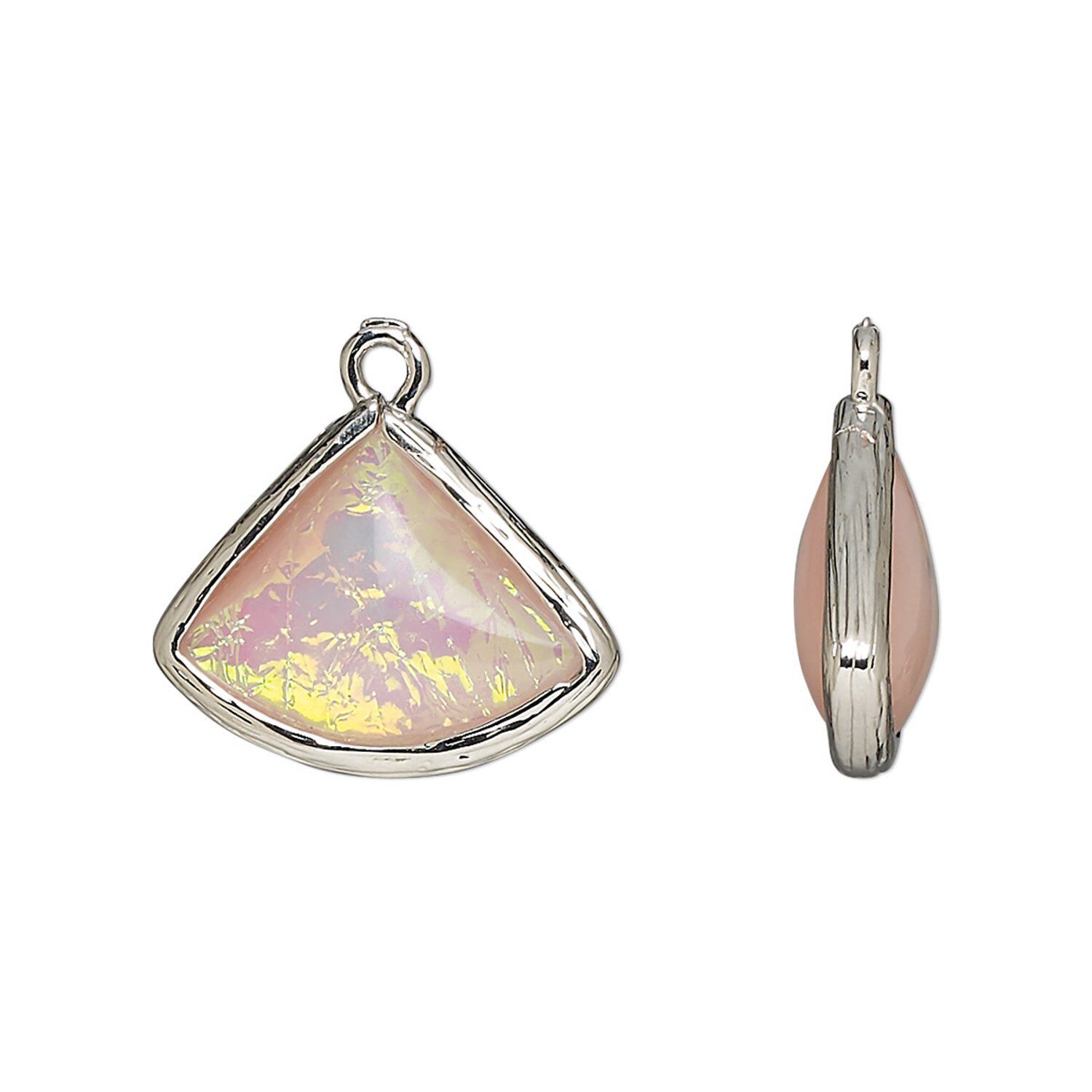 Drop, Opalized Ice™, "opal" (resin) and imitation rhodium-finished brass, opaque light pink, 19x15mm double-sided fan. Sold per pkg of 4.