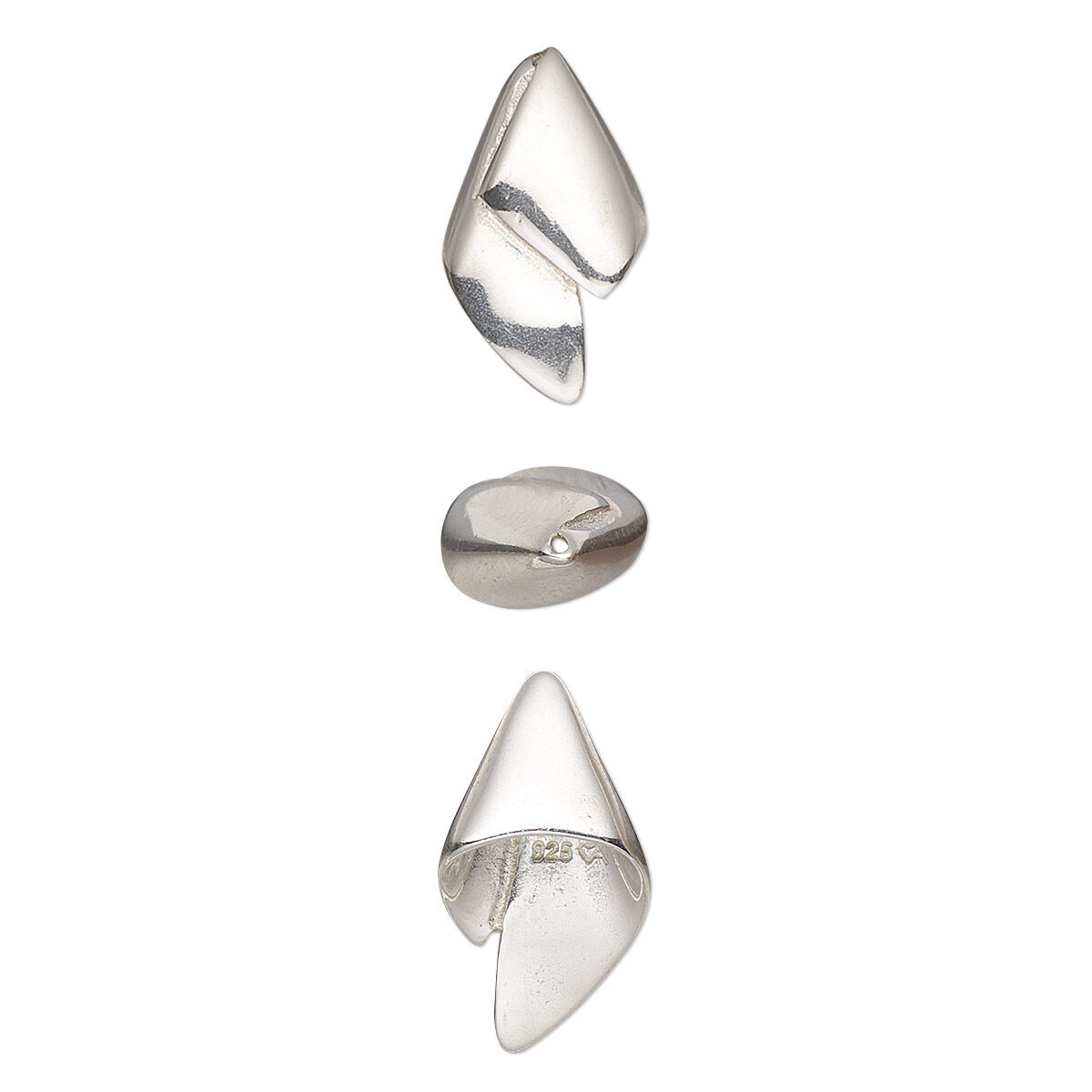 Bead cap, Amoracast®, sterling silver, 15x8mm fortune left, fits 4-6mm bead, for use with 25-32 gauge wire. Sold individually.