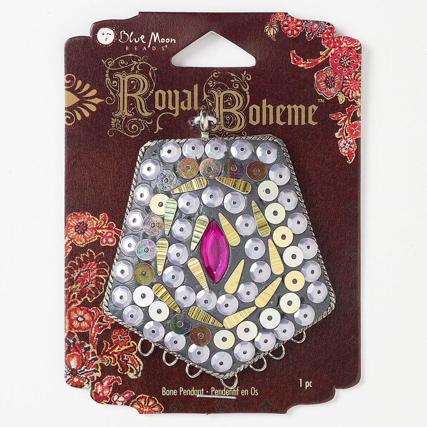 Focal, resin / acrylic sequins / antique silver-finished "pewter" (zinc-based alloy), multicolored, 57x54mm-57x55mm pentagon, 7 loops. Sold individually.