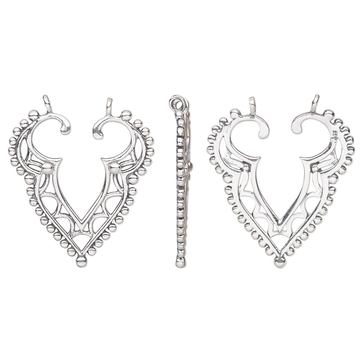 Embellish designs with the ornate detail of this sterling silver heart connector. Two top loops allow for easy centering. Connector has an anti-tarnish coating.