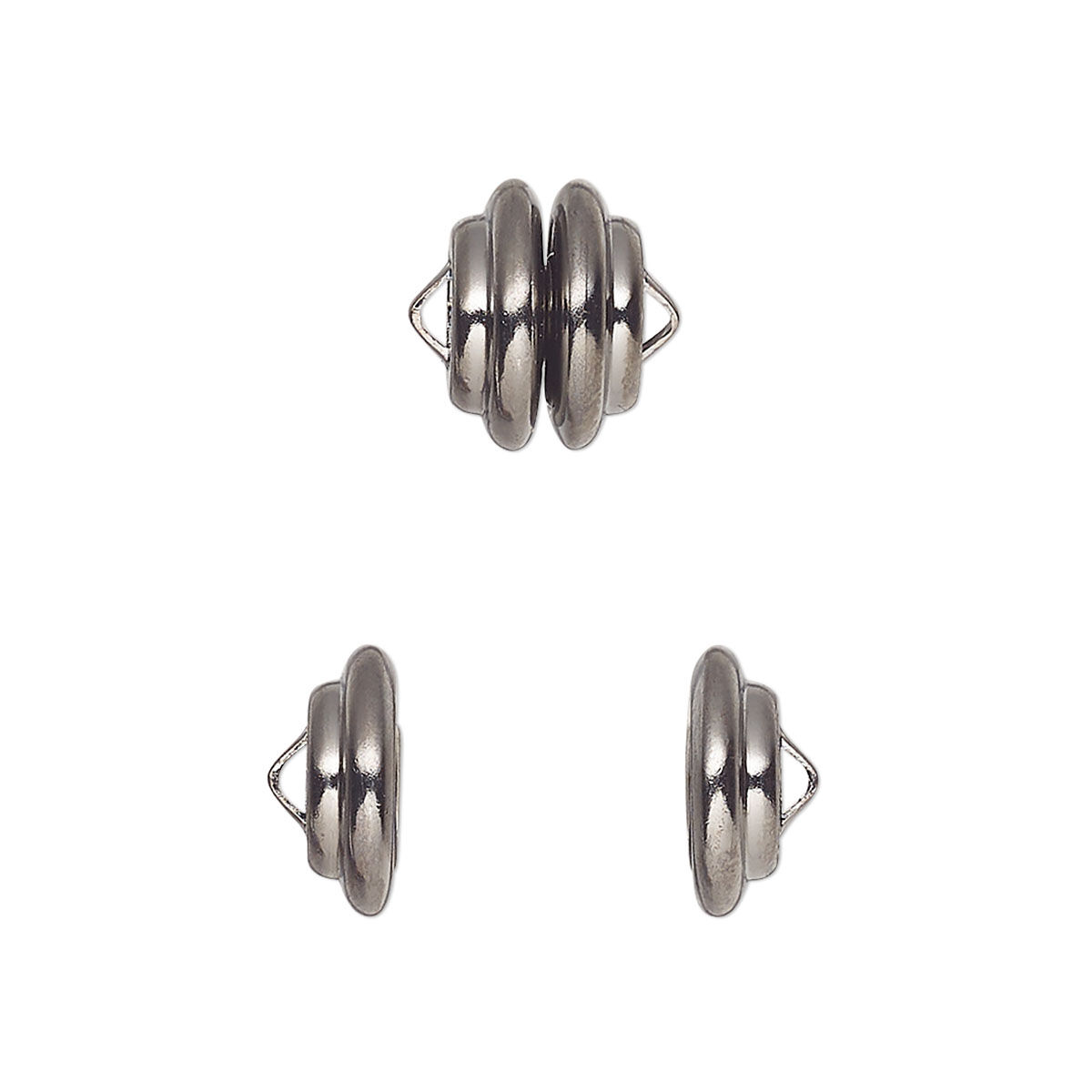 Clasp magnetic 1pkg12 black-plated, 10.8x7.7mm ribbed rondelle, brass Mag-Lok® 1-strand