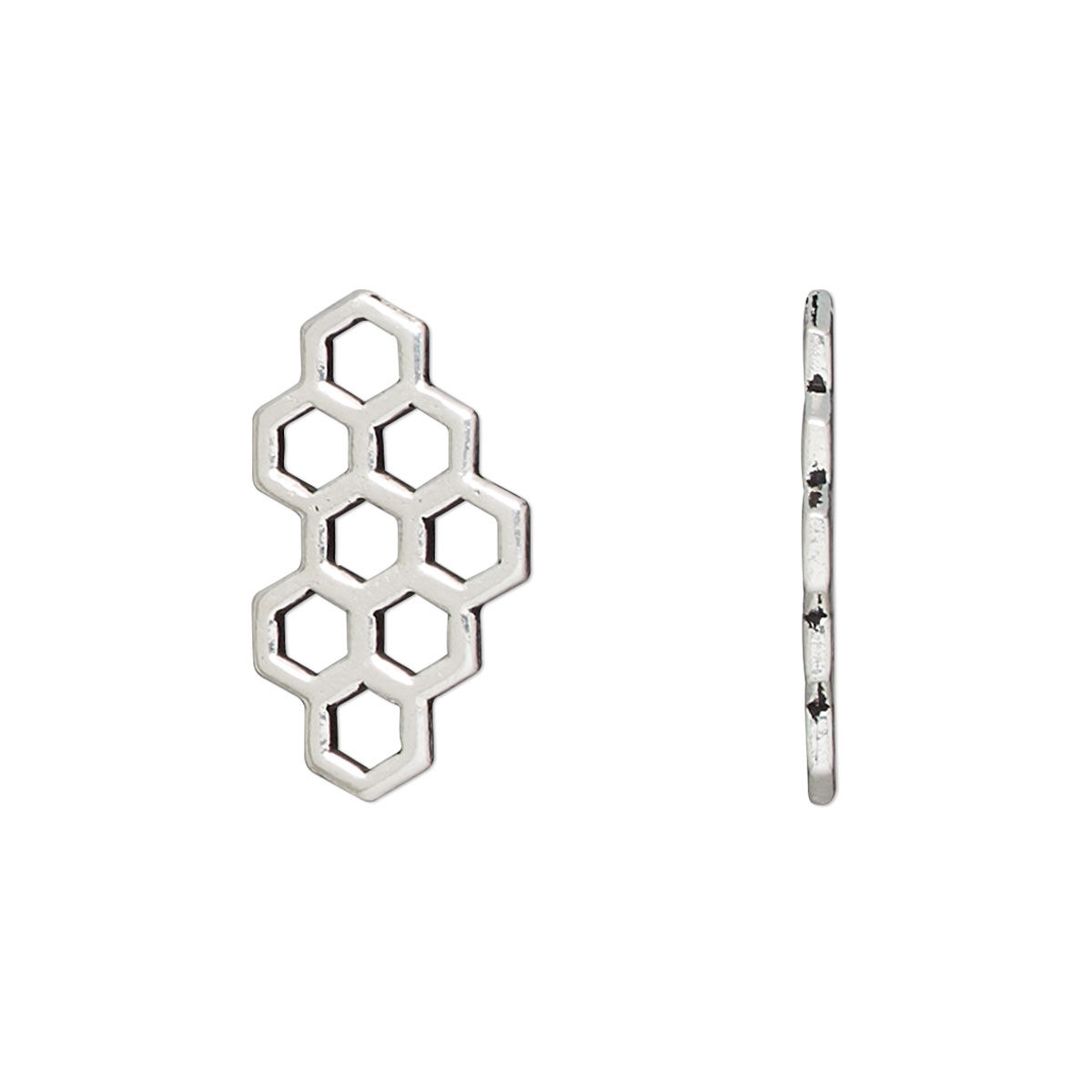 Connector, TierraCast®, antique silver-plated pewter (tin-based alloy), 20.5x11.5mm double-sided honeycomb with cutout design. Sold per pkg of 20.