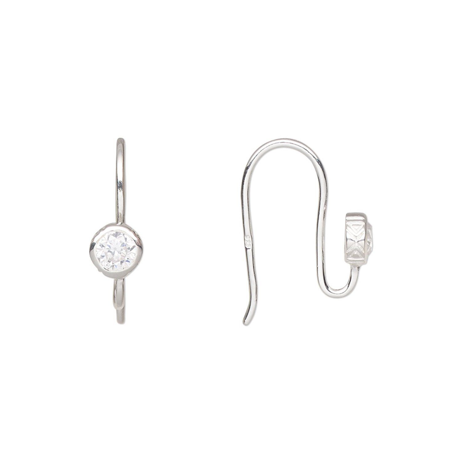 Ear wire fishhook 1pkg2 sterling silver / cubic zirconia, 16mm / 5mm round / open loop, 18 gauge clear 1 pair