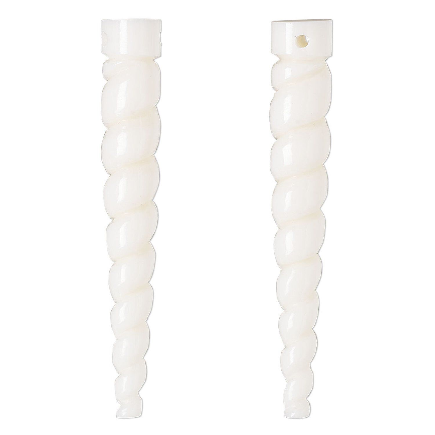 Focal, bone (bleached), white, 47x8mm hand-carved spiral point, Mohs hardness 2-1/2. Sold per pkg of 2.
