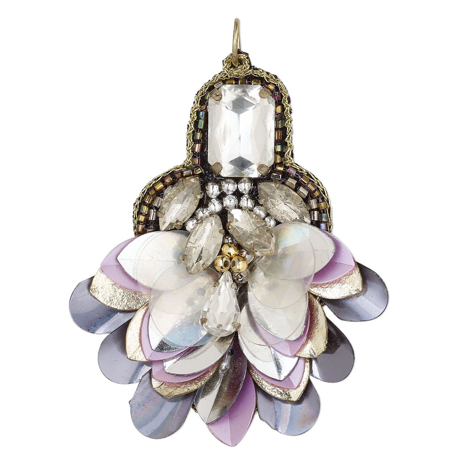 Inspired by the Indian artform Zari (or Jari) which uses metal-wrapped thread woven into fabric, these handmade focals offer intricate detail and versatility. Easily incorporate them into earrings or sew them onto clothing and handbags. Though large, their construction is light enough to be used in earrings. Like Zari, these focals feature dazzling designs made of rhinestones, glass beads and more. Sizes, shapes and colors may vary with handcrafted items.