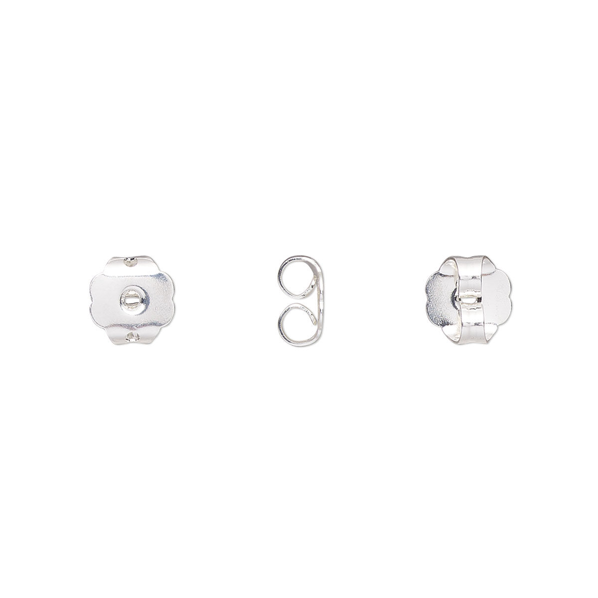 Earnut 1pkg20 silver-plated, 6x6mm scalloped round, brass 10 pair