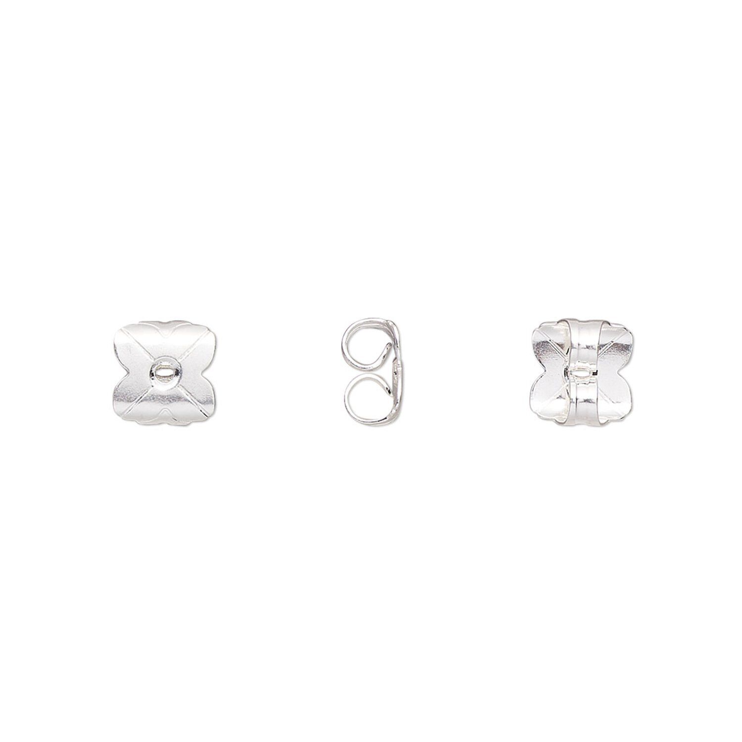 Earnut 1pkg20 silver-plated, 6x6mm clover, brass 10 pair