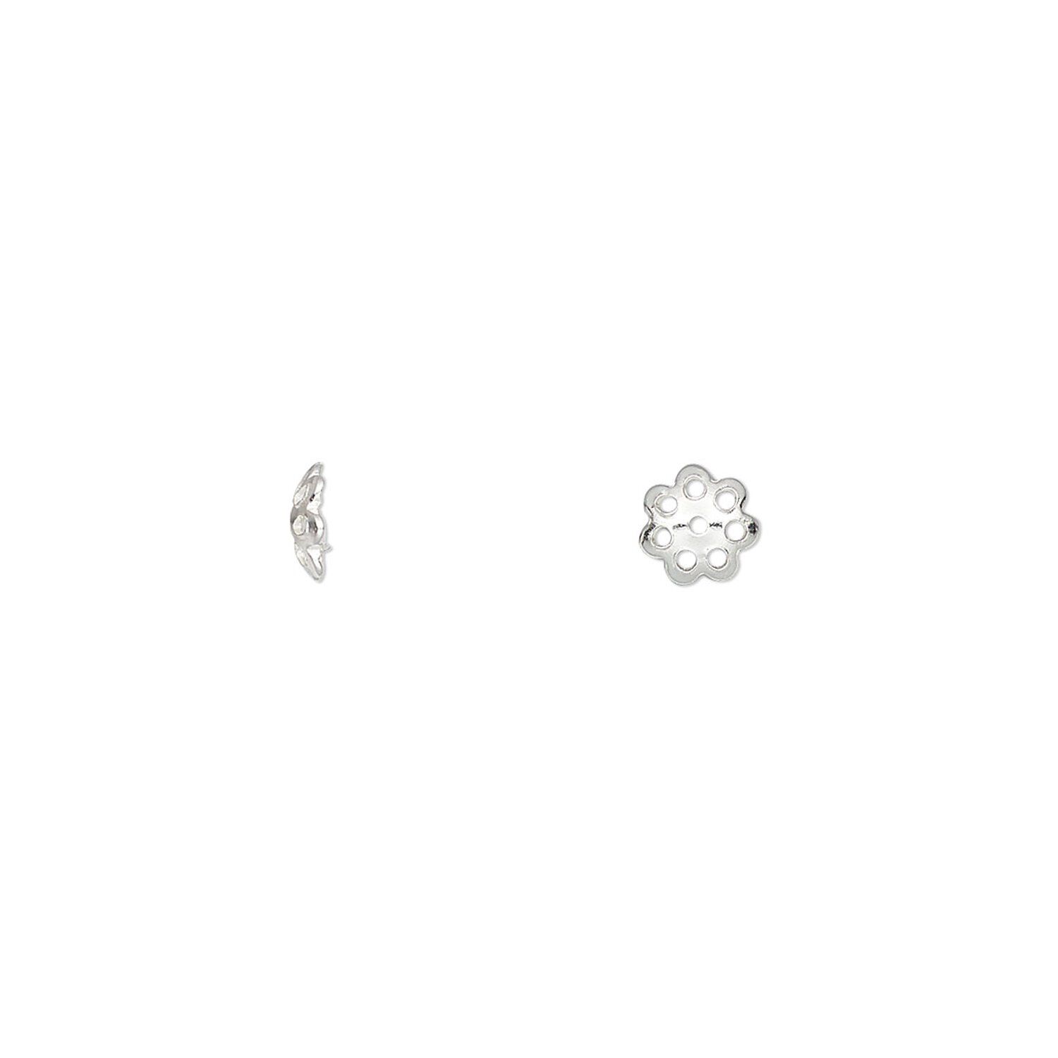 Bead cap, sterling silver, 5x1.5mm flower, fits 4-6mm bead. Sold per pkg of 10.