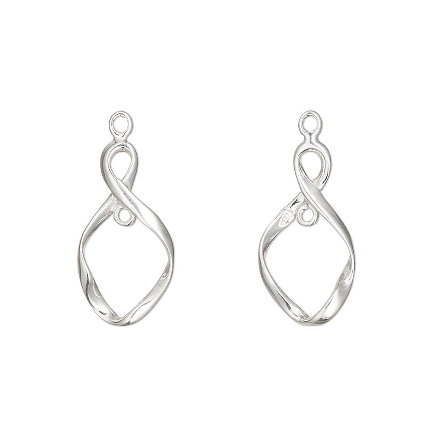Drop, sterling silver, 19x10mm twisted infinity with closed loop. Sold per pkg of 2.