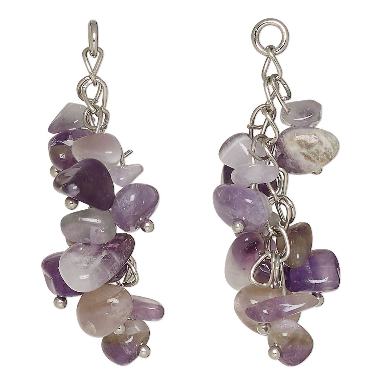 Amethyst / carbon steel 1pkg2, silver-finished cluster 5mm jump ring natural 48x14mm